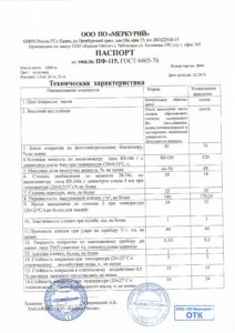 Пример паспорта качества на эмаль ПФ-115 Мастер салатового цвета производства ООО Краски оптом