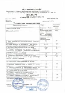 Пример паспорта качества на эмаль ПФ-115 Мастер синего цвета производства ООО Краски оптом