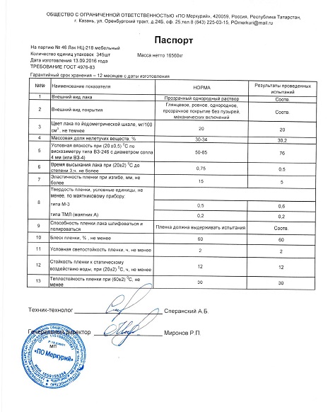 (Пример паспорта на НЦ-132П желтую производство ПО Меркурий)